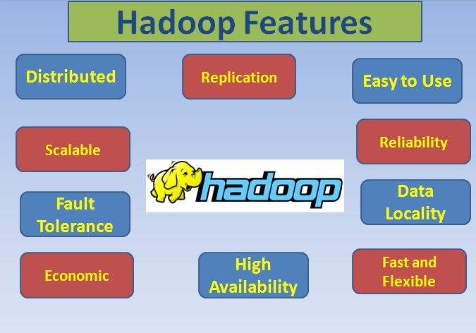 Open source, Distributed processing, Fault tolerance, Reliability, High availability, scalability, Economic and data locality and easy to use these are the advantages and features of hadoop.