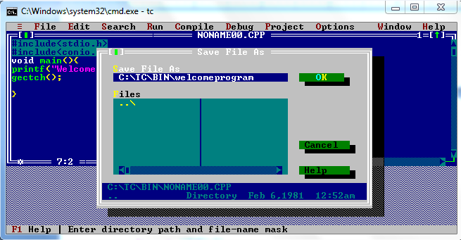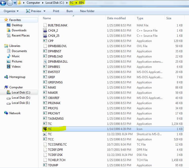 5. Go to the folder where you installed C in your PC( in my system I was installed C in C:\TC folder)